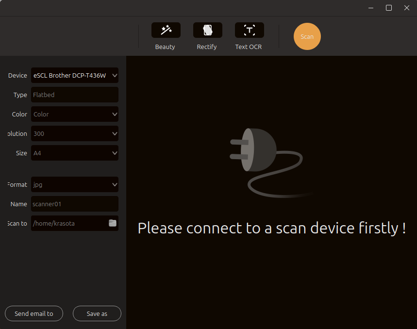 Kylin-scanner can scan according to the resolution, size and color mode of the scanning device. And it provides post-processing features for scanned images, such as clipping, rotation, one-click beautification, intelligent correction and text recognition, etc.