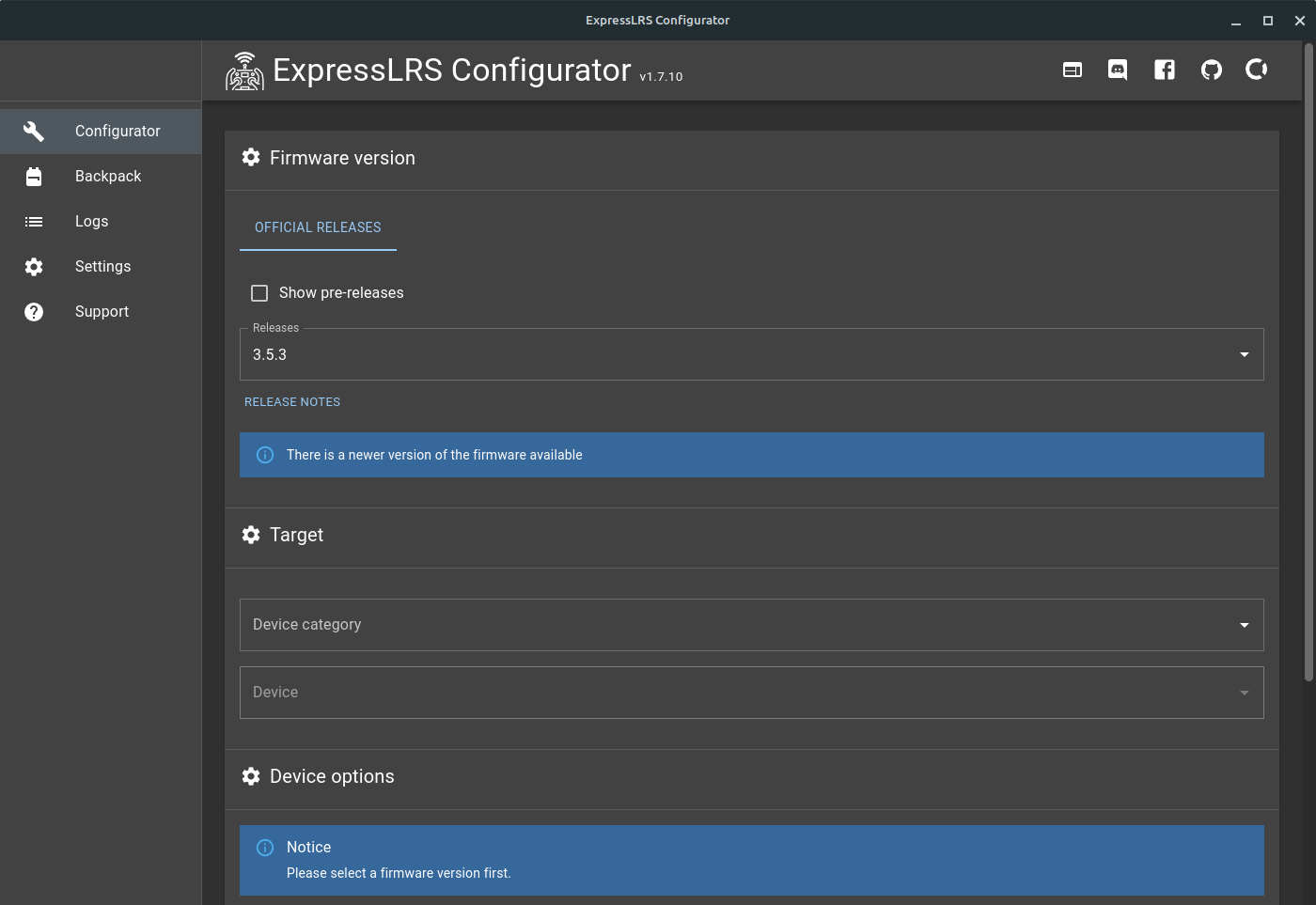 Cross platform configuration tool for the ExpressLRS firmware
