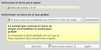 mostrandome de nuevo esta ventana pero ahora al hacer clic sobre el botón Copiar me hizo la copia, deteniendose solo para pedirme meter el nuevo cd en la unidad grabadora.
